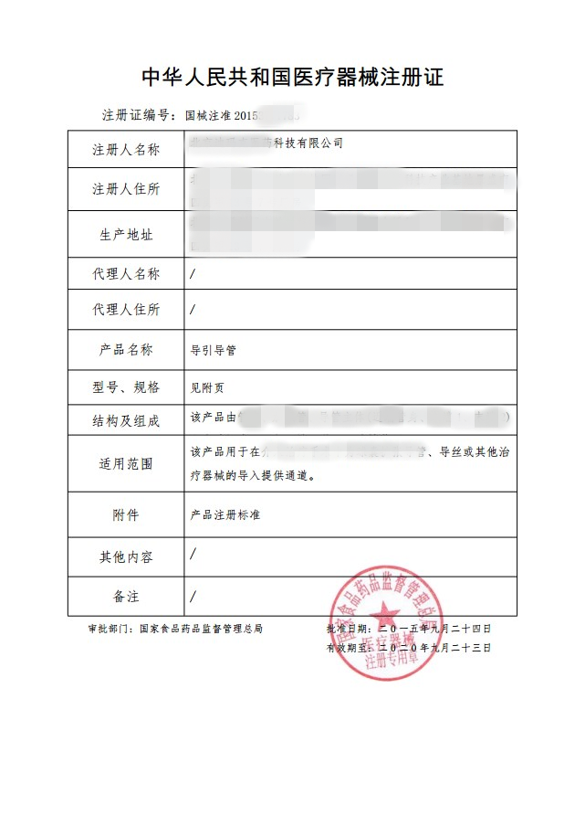 醫(yī)療器械產(chǎn)品注冊證